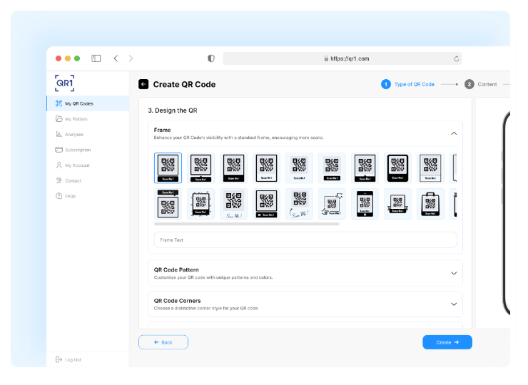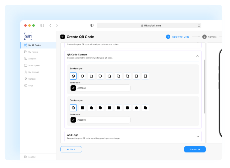 Stand out with QR codes that truly represent your brand. QR1 offers advanced customization options, allowing you to tailor colors, frames, backgrounds, and even embed your logo. Move beyond basic black-and-white codes and create dynamic, visually appealing QR codes that captivate your audience.