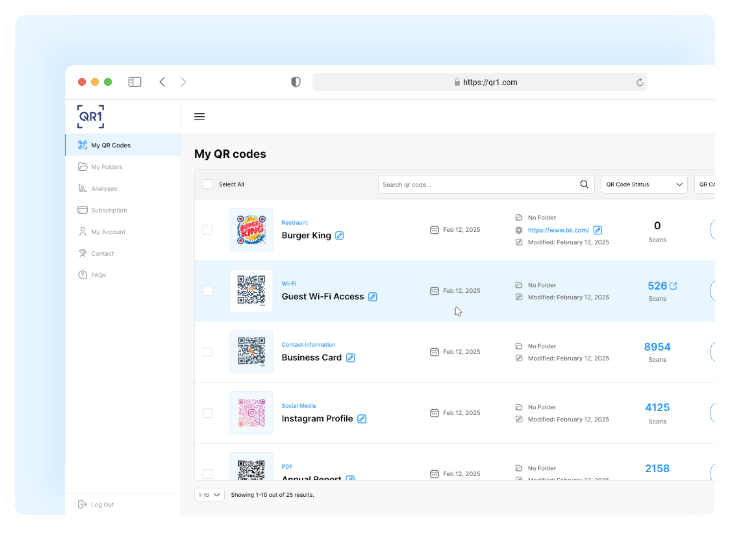 QR1 is the ultimate platform for creating, designing, editing, and managing all your QR codes in one place. Whether you're a business owner, marketer, or creative professional, our comprehensive tools make QR code management simple and efficient.